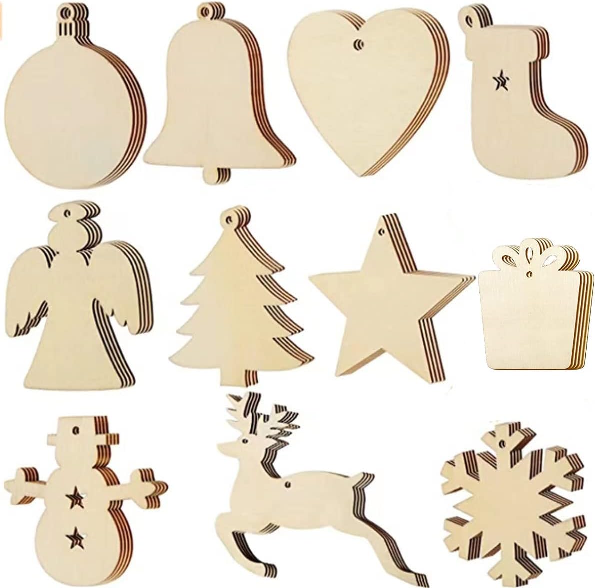 18PCS DIY Wooden Christmas Ornaments Unfinished Predrilled Wood Circles for Crafts Centerpieces Holiday Hanging Decorations in 17 Shapes