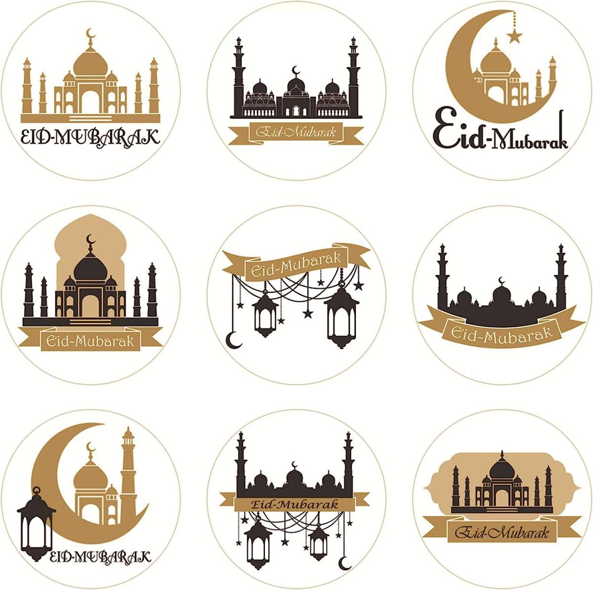 90 Pcs Brown Ramadan Sticker Kit Ramadan Brown Round Sticker Ramadan Party Festival Supplies Favors