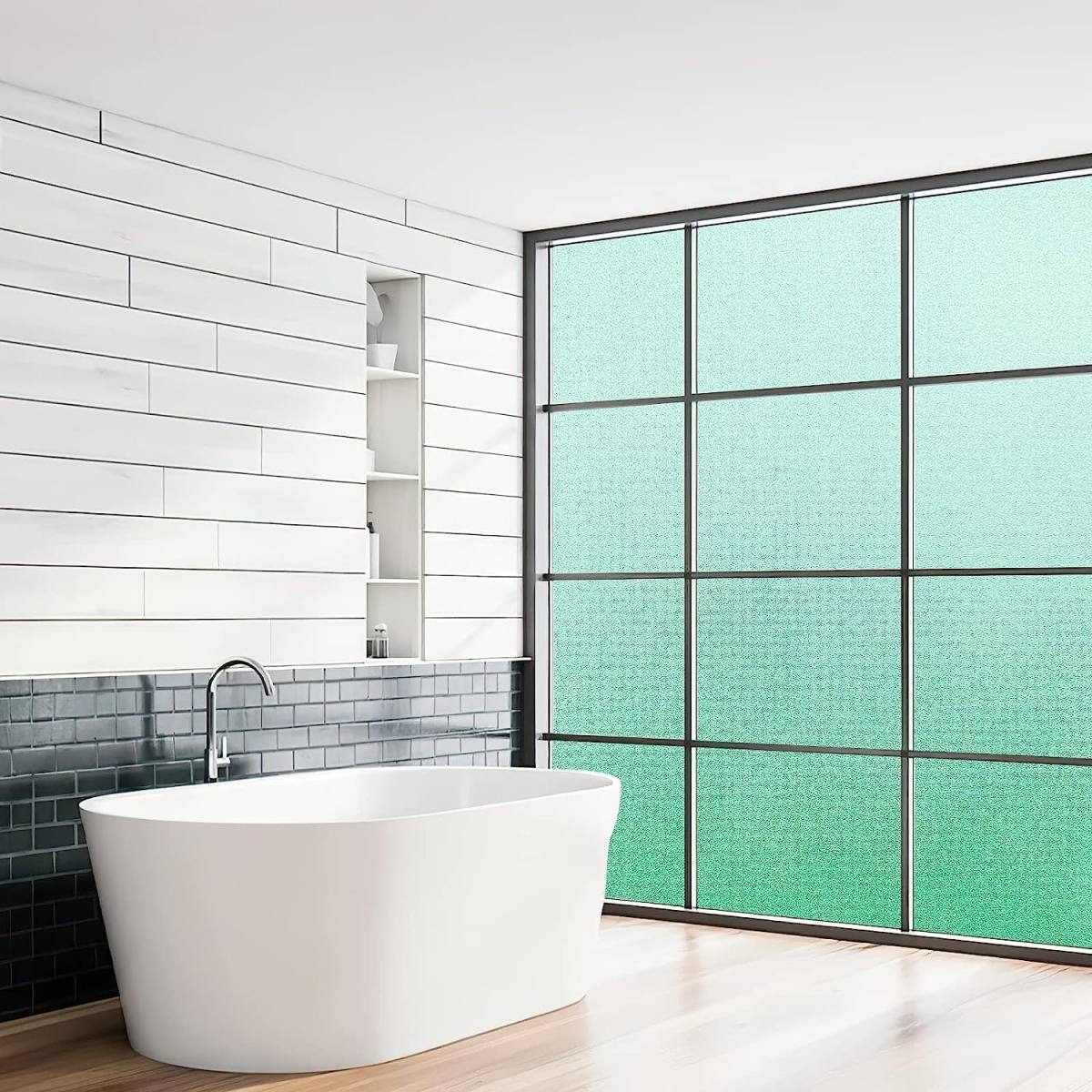 Green Window Film Privacy Film Frosted Decorative No Glue Self Static Cling Anti UV Removable for Home Living Room Bedroom Bathroom Kitchen Office (45cm x 254 cm)