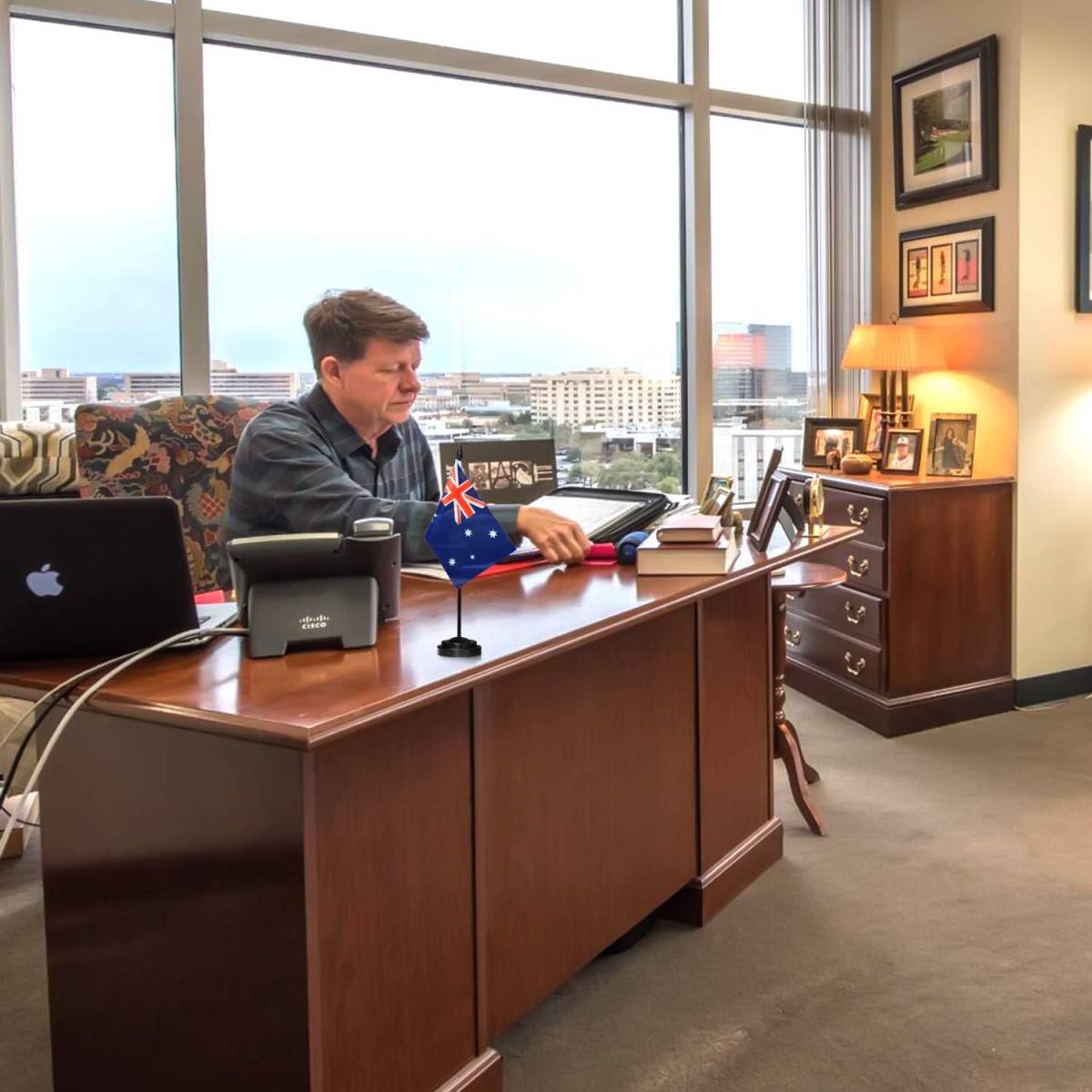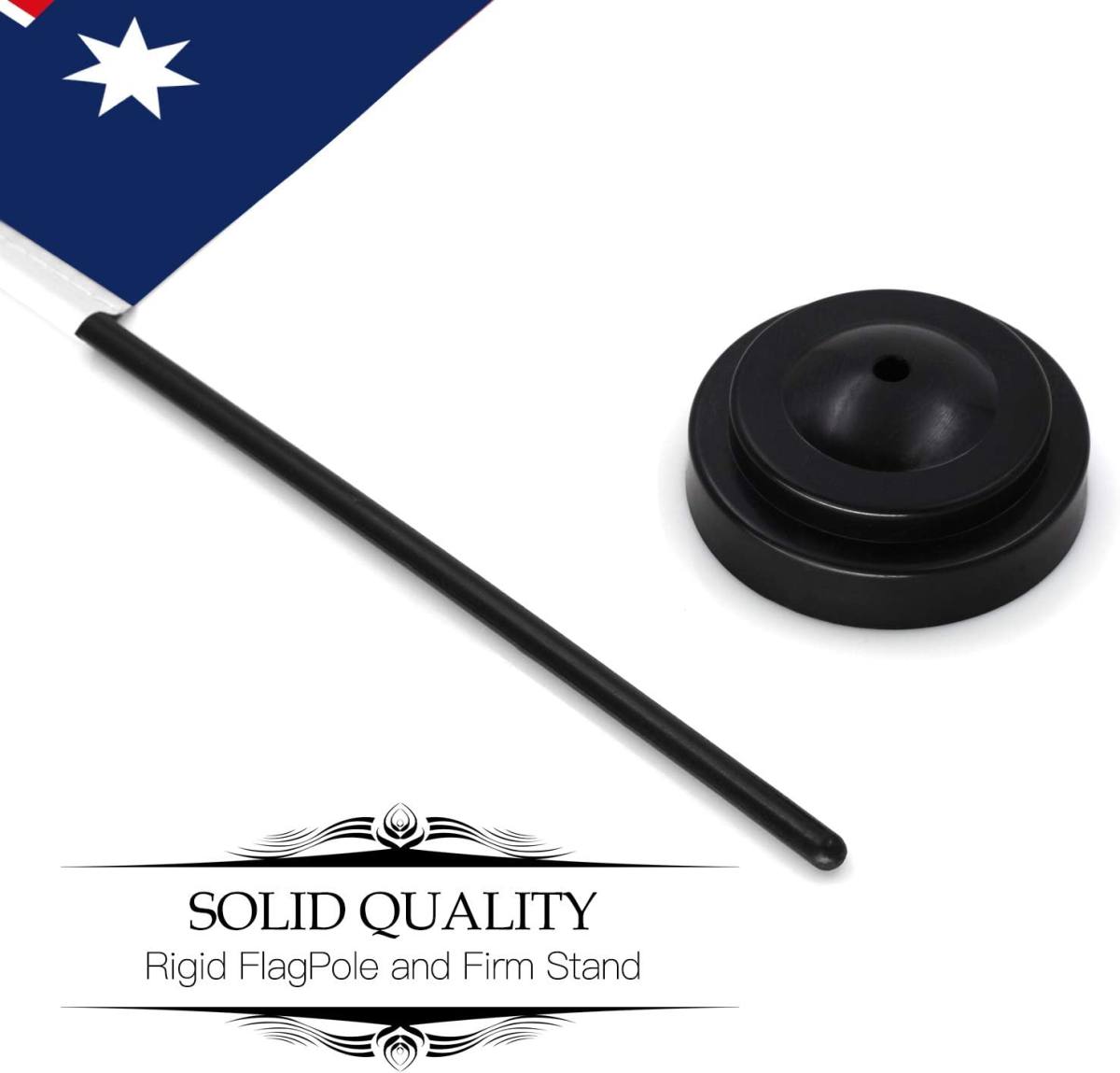 Australia Deluxe Desk Flag Set – 6 x 4 Inch Miniature Australian Desktop Flag with 12″ Solid Pole – Vivid Color and Fade Resistant – Black Base and Spear Top