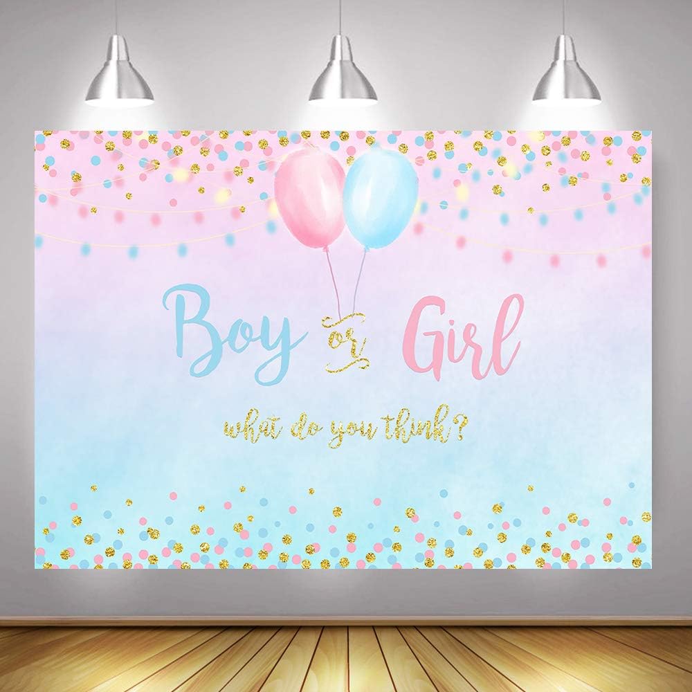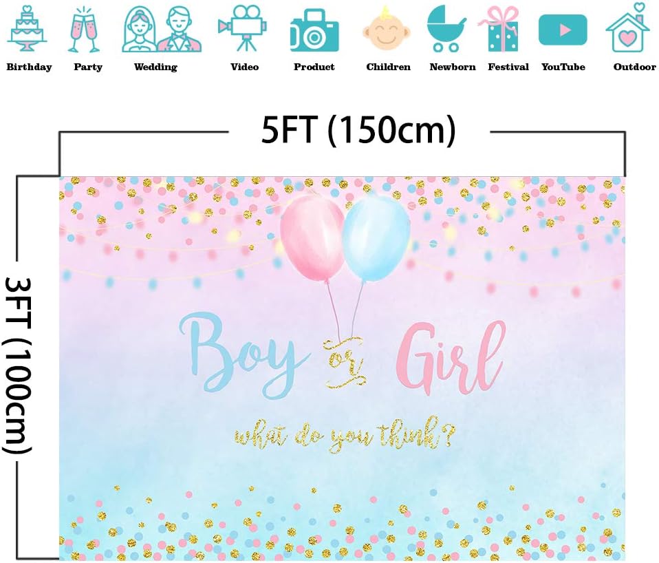 Boy or Girl Gender Reveal Decoration, Blue or Pink Dots Balloon Party Backdrop, 5x3ft Vinyl Gender Reveal Banner Supplies