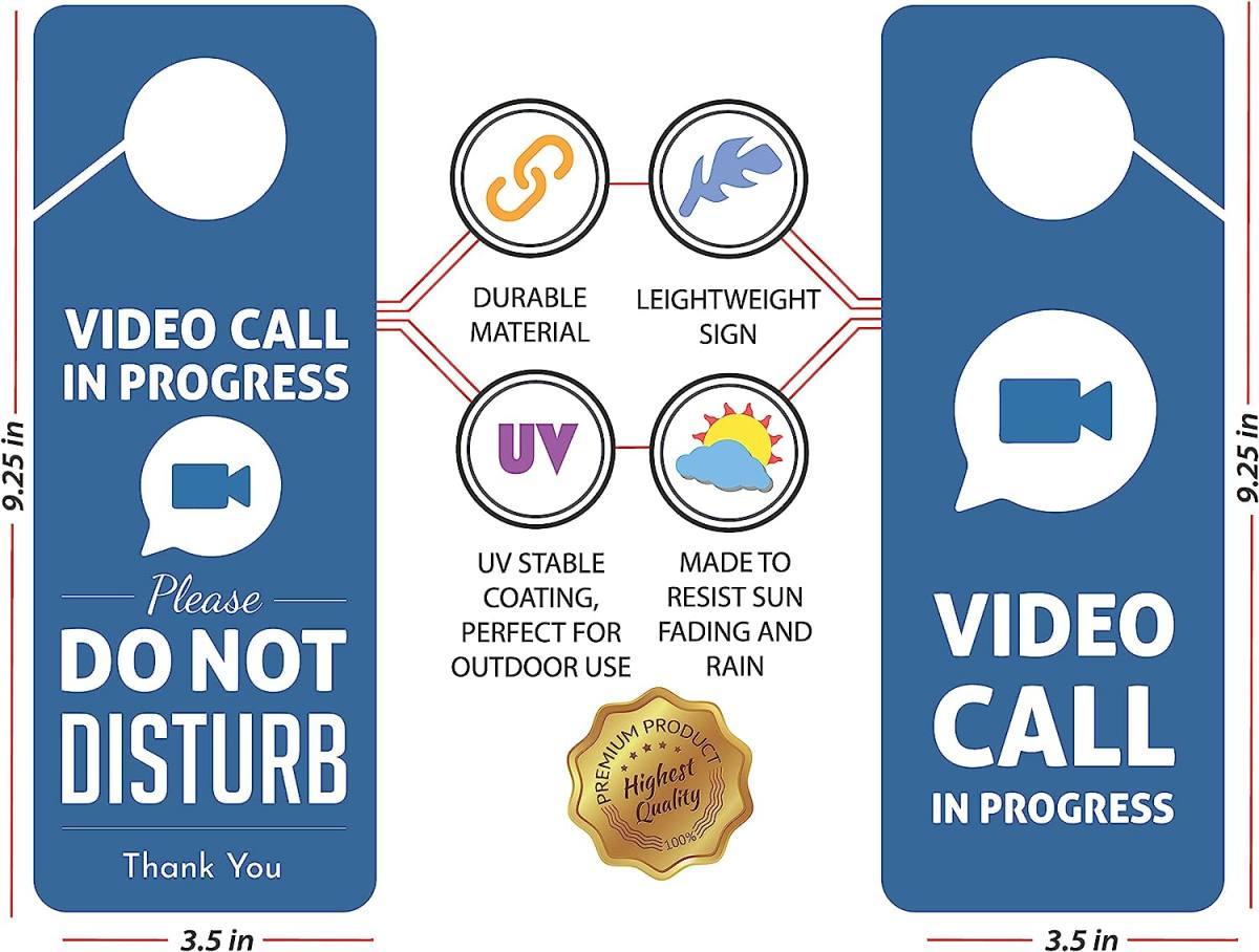 Business Design, Video Call in Progress Do Not Disturb Door Hanger Sign, 2 Pack, Double Sided, Ideal for Online Sessions and Meetings, Online Classes, Home Offices