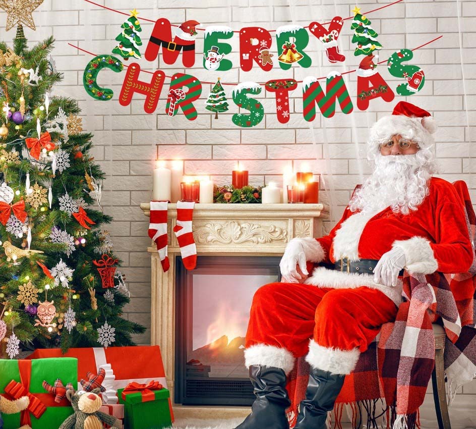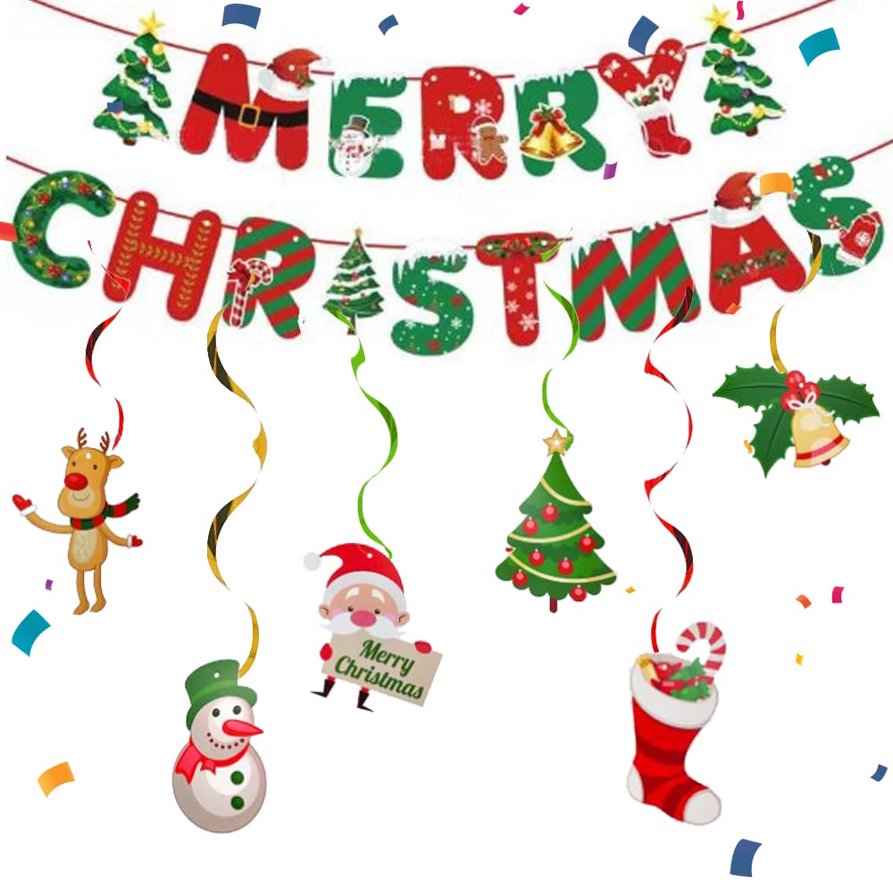 • Christmas Party Decorations Kit,Merry Christmas Banner,Xmas Swirls Streamers Set,Santa Claus Snowman Xmas Tree Xmas Elk Xmas Party Supplies,Winter Holiday Family Party Banners Decor Props