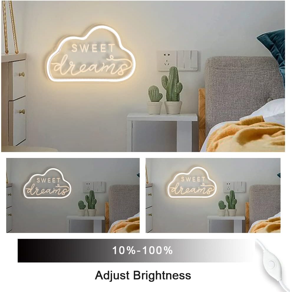 Cloud Sweet Dream Neon Sign with Dimmer Switch for Wall Décor, Led Neon Light Sign with 3D Art for Kids Bedroom, Christmas,Children’s Day Gift, Kindergarten by Warm White