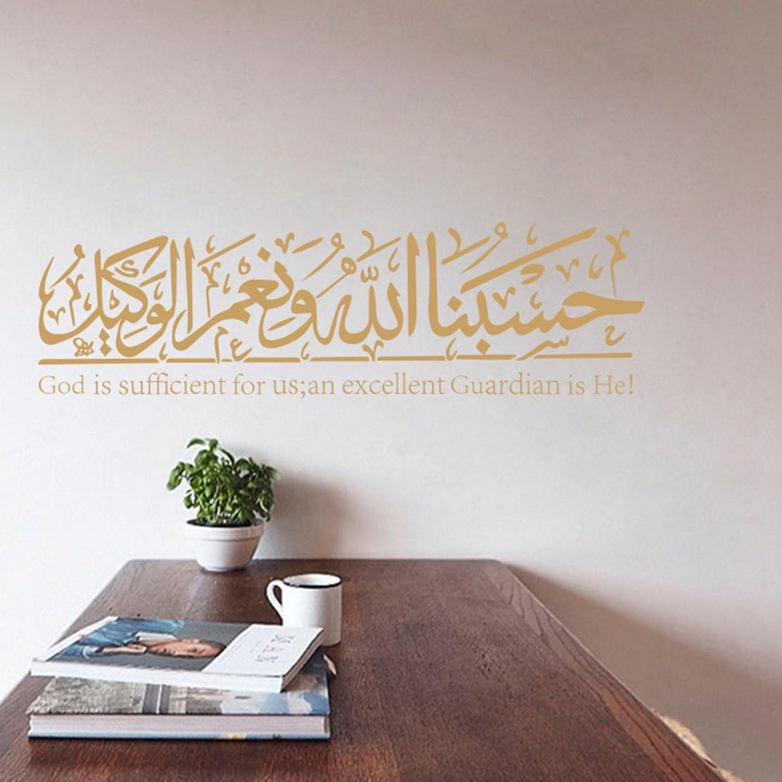 DIY Removable Islamic Muslim Culture Surah Arabic Bismillah Allah Vinyl Wall Stickers/Decals Quran Quotes Calligraphy as Home Mural Art Decorator 9771(75x22cm) (Gold)