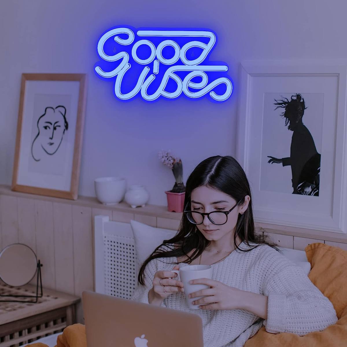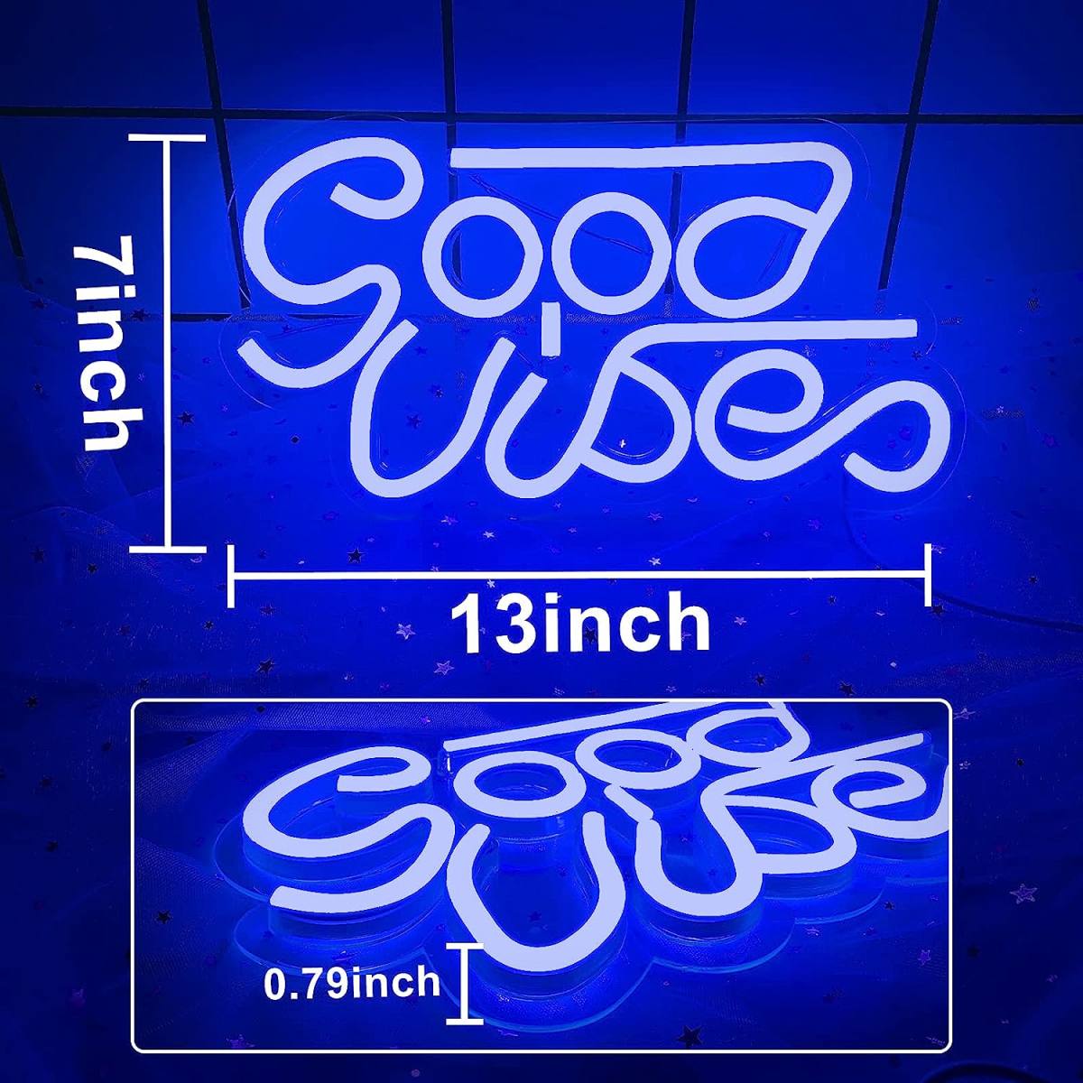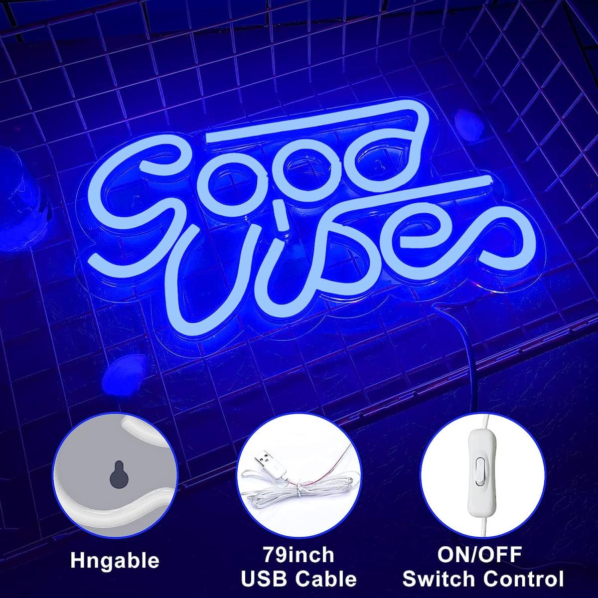 Good Vibes Neon Signs Led Neon Light Signs with Acrylic Board, Goodvibes Neon Word Light Wall Decor for Bedroom, Makeup Room, Game Room,Bar,Wedding,Party (Blue)