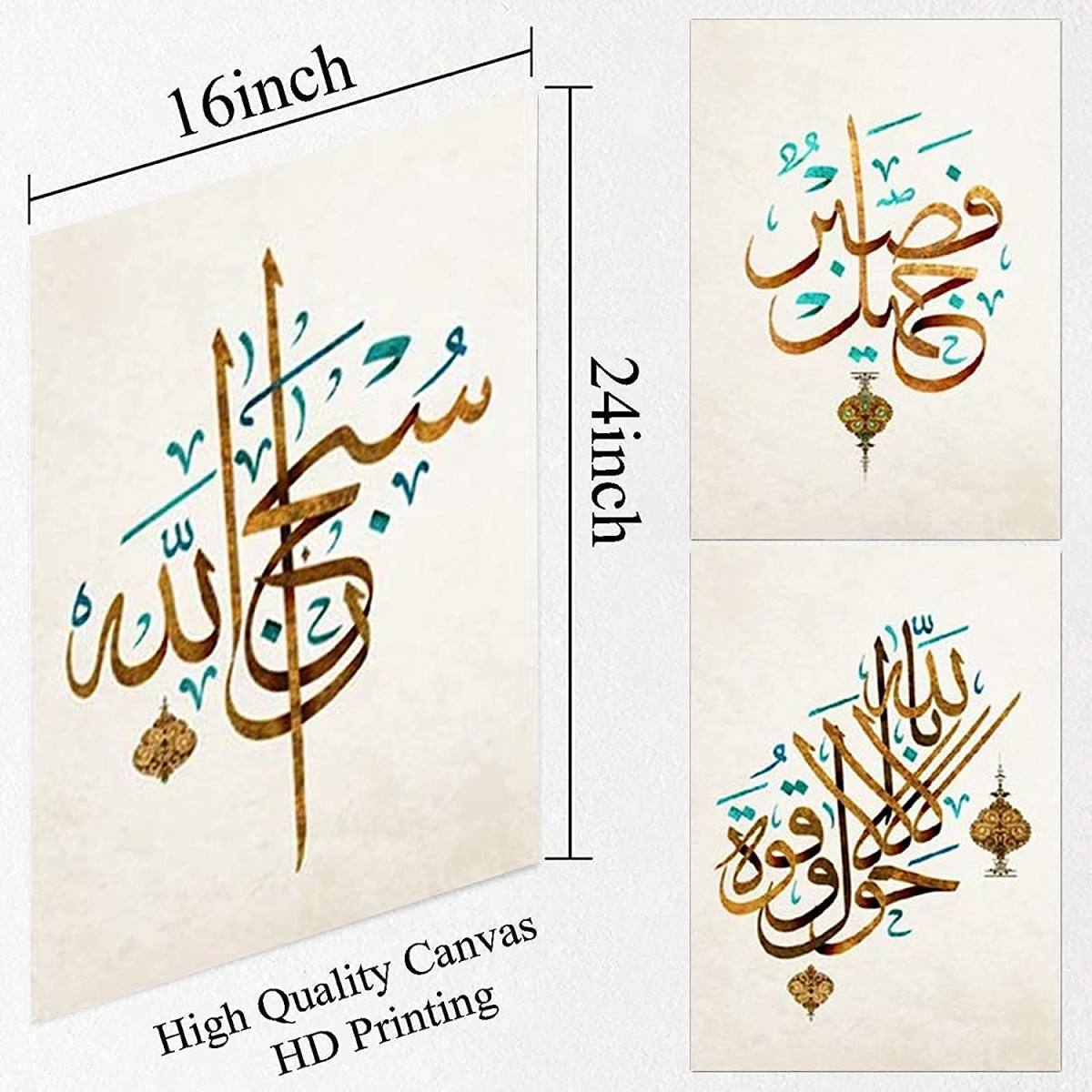 Islamic Canvas Wall Art Arabic Calligraphy Wall Decor Print Posters 3 Pieces Modern Religion Pictures Home Office Decorations 16 * 24 Inch Unframed (A, 16 * 24 inch Unframed)
