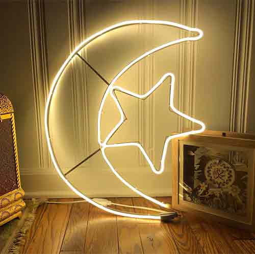 Large Moon and Star, Neon Light, Ramadan, Muslim, Eid, Yellow, LED, 50×75 cm