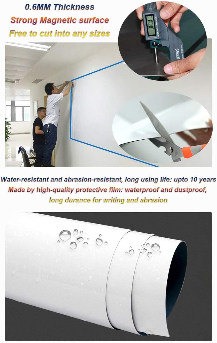 magnetic whiteboard, Dry Erase Whiteboard Paper Thick Sticker Decal Self-adhesive 60x40cm 24×16” Soft White Board Peel and Stick for School Office Home Kids Drawing