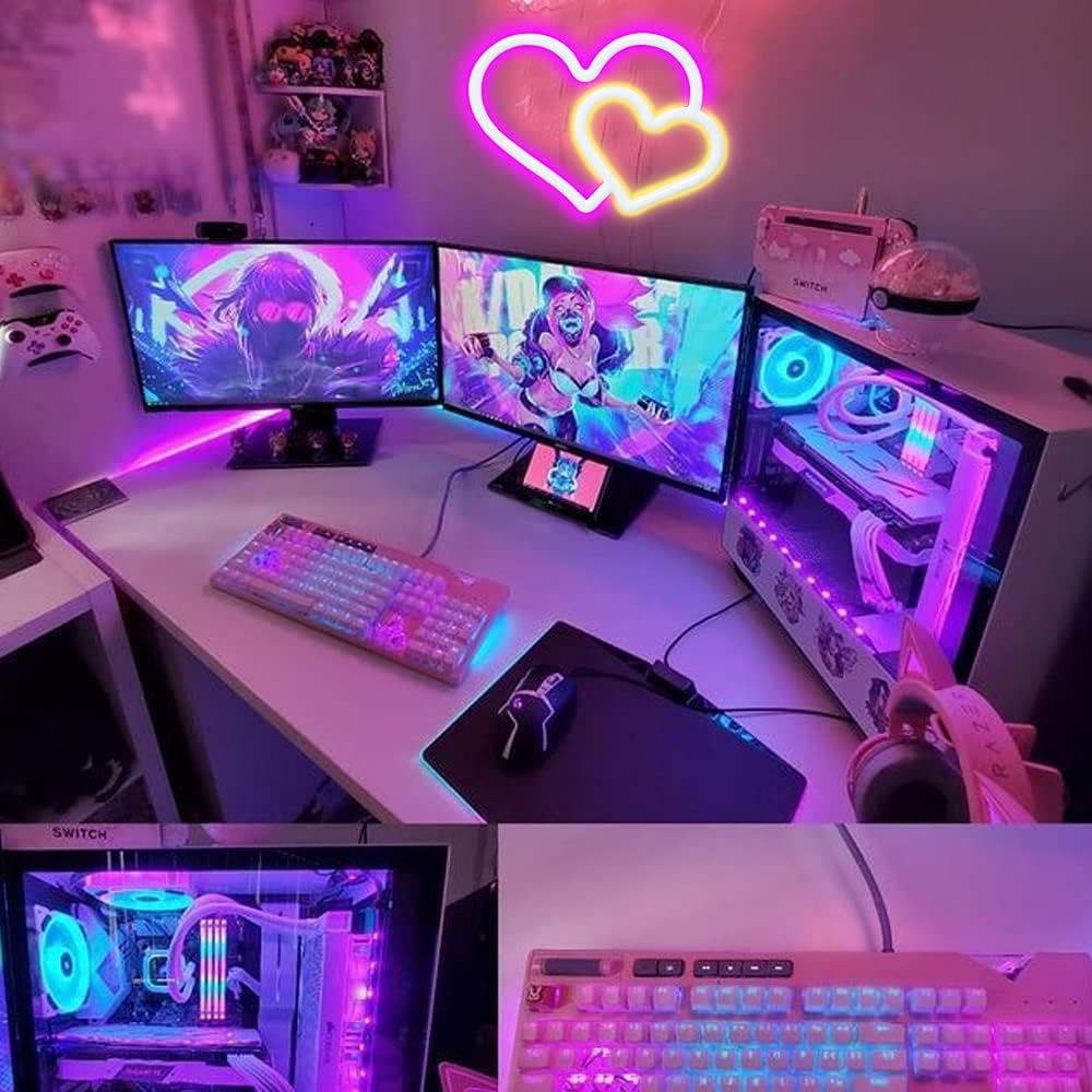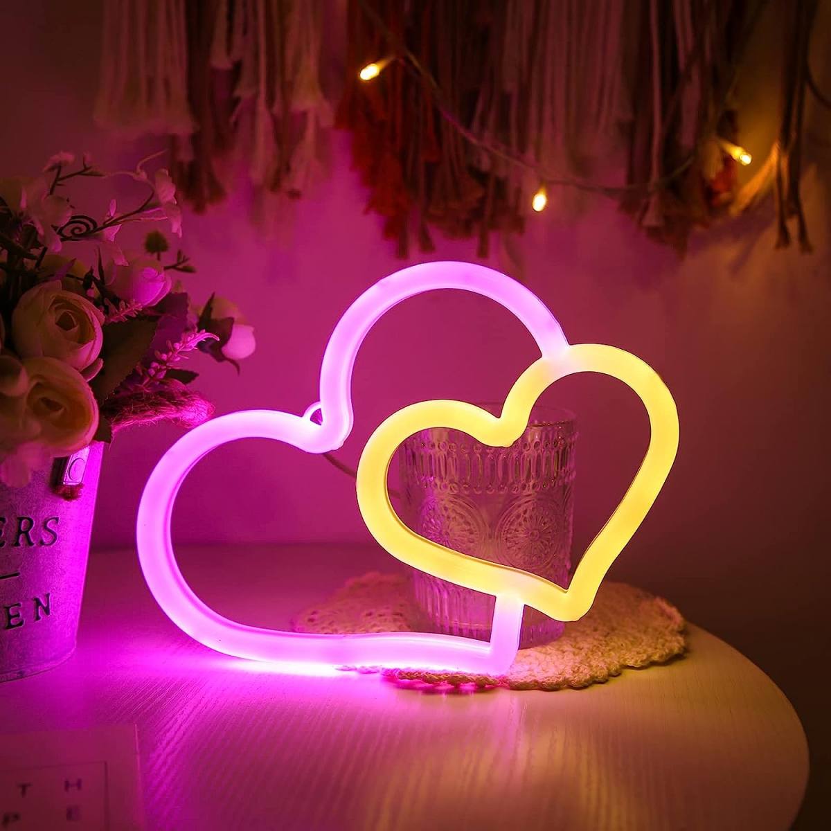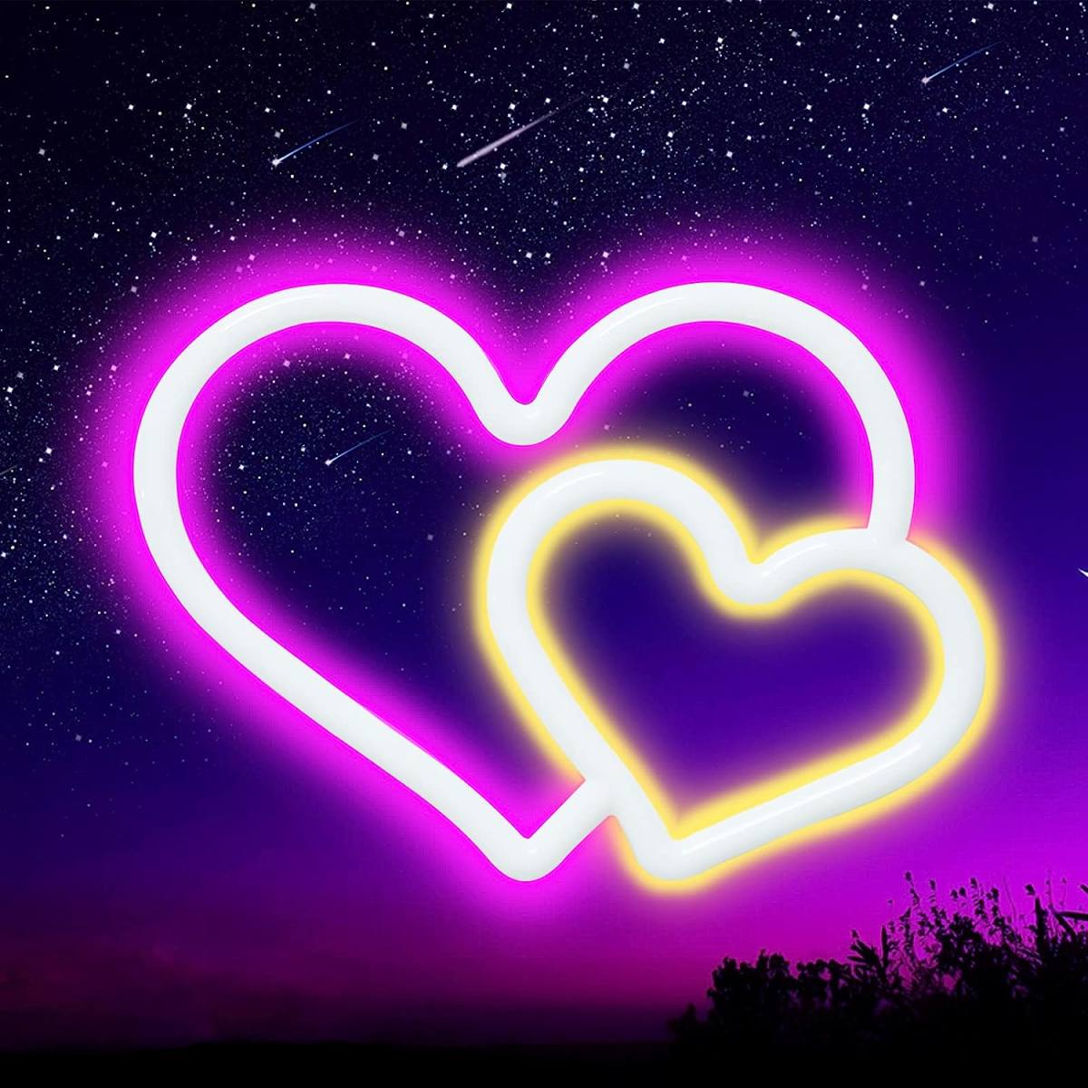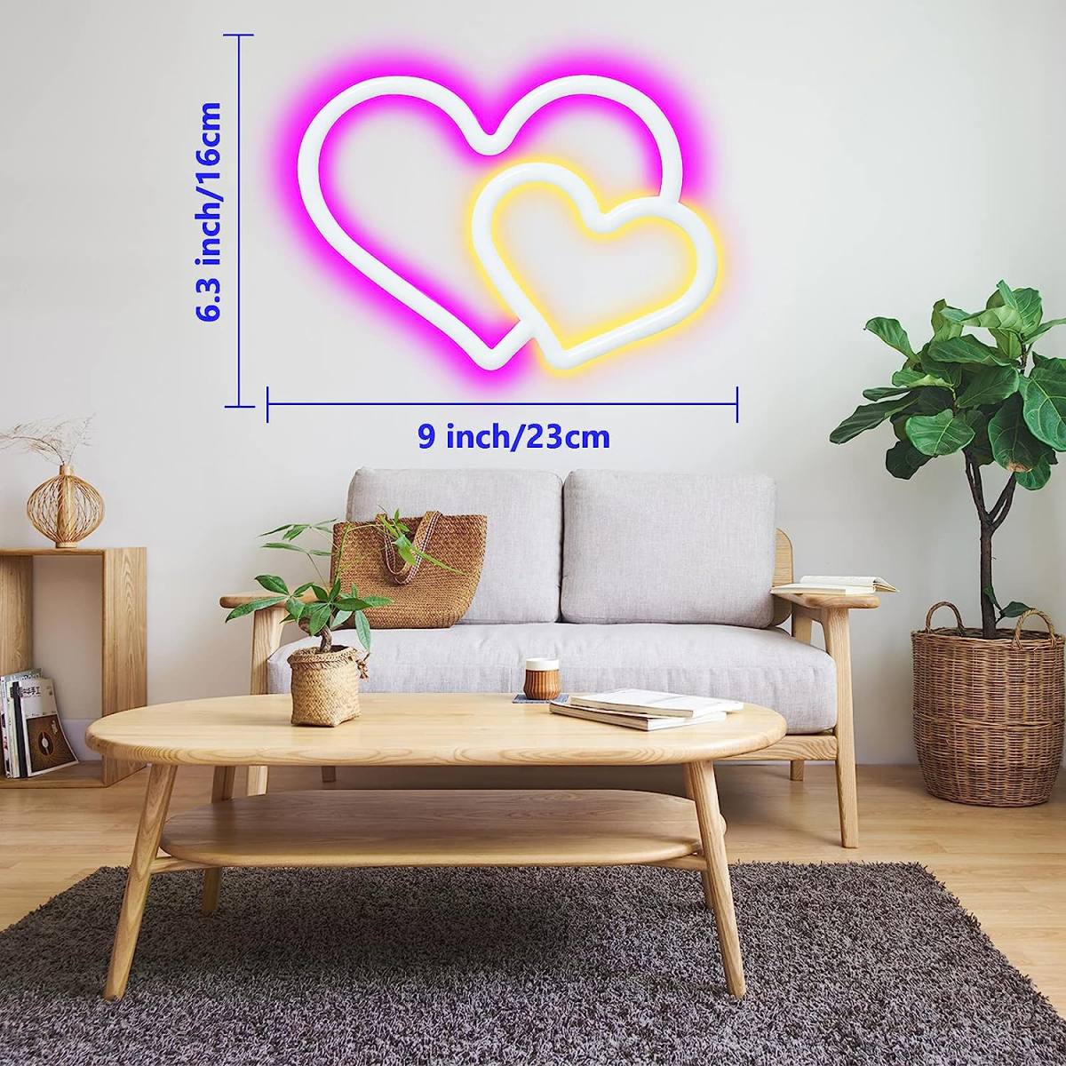 Neon Sign, Heart Led Neon Lights, Neon Light Sign for Wall Led Neon Sign for Bedroom Aesthetic Cool Room Decor, Kids Gift, Living Room, Party, Christmas, Wedding, Halloween