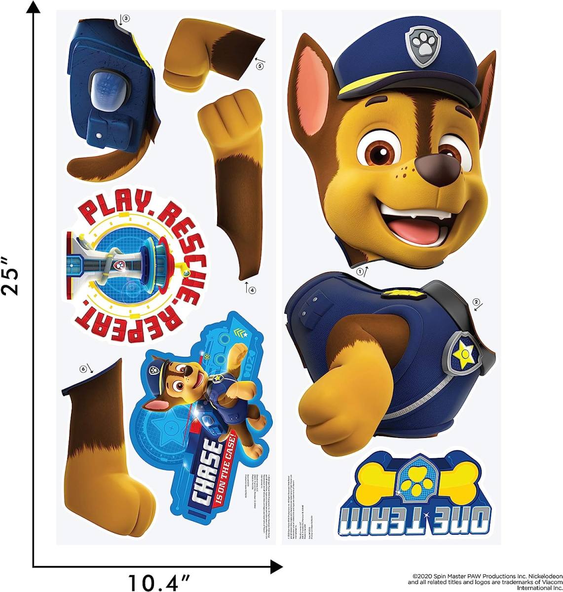 Nickelodeon Paw Patrol Wall Decal – Chase Wall Stickers for Kids with 3D Augmented Reality Interaction – Kids Wall Decals Paw Patrol Stickers – Measures 17″ Wide 24″ Tall