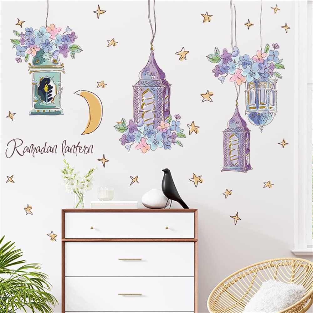 • Ramadan Decorations Wall Stickers, Islamic Muslim Eid Window Stickers,Eid Mubarak Ramadan Decor Moon Lantern Stickers Decals, Window Clings, Ramadan Decorations Living Room Bedroom Wallpaper