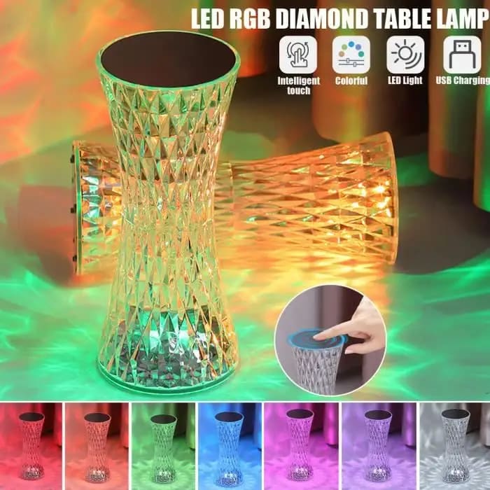 RGB Diamond Table Lamp USB Touch Sensor Acrylic Decoration Bedroom Bar Crystal Lighting Gift LED Night Light