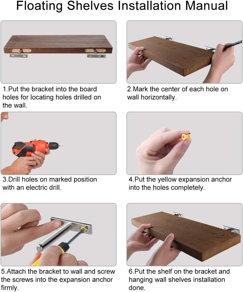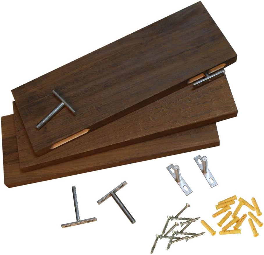 Rustic Wood Floating Shelves, Wall Mounted Shelf Hanging Wall Decorative Shelves Display Ledge Storage Rack for Bathroom, Kitchen, Bedroom, Living Room – Set of 3 (Paulownia)