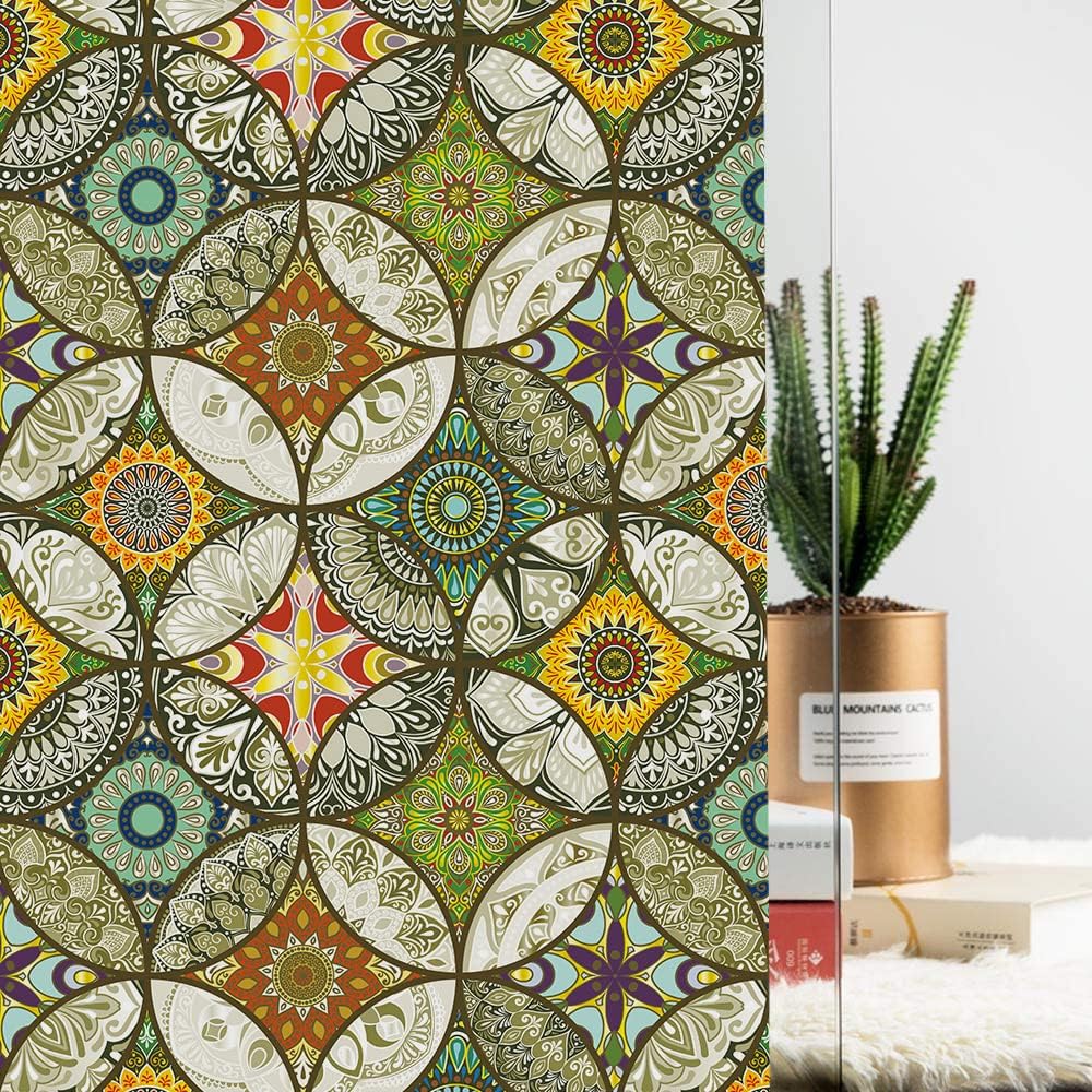 Static Cling Decorative Window Film Vinyl Non Adhesive Privacy Film,Stained Glass Window Film for Bathroom Shower Door Heat Cotrol Anti UV (Yellow Green, 17.7In.by 78.7In.(45x200cm))