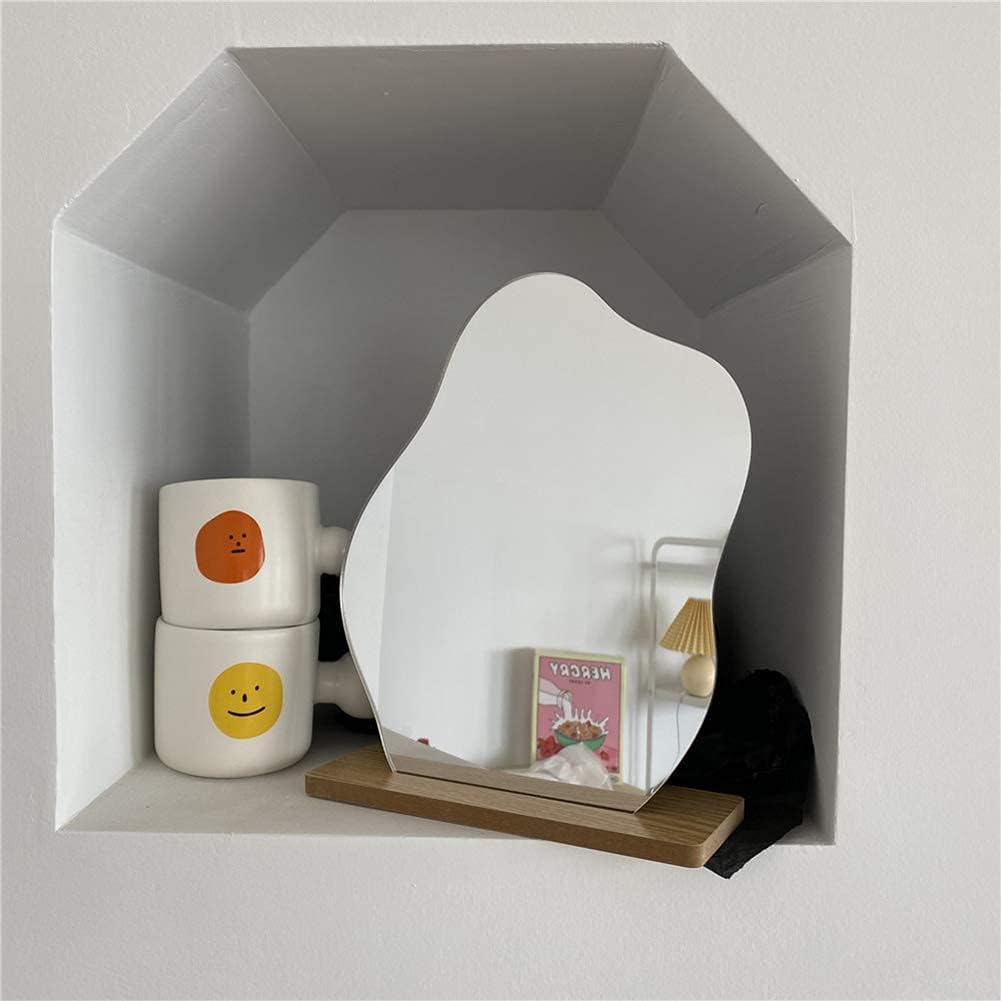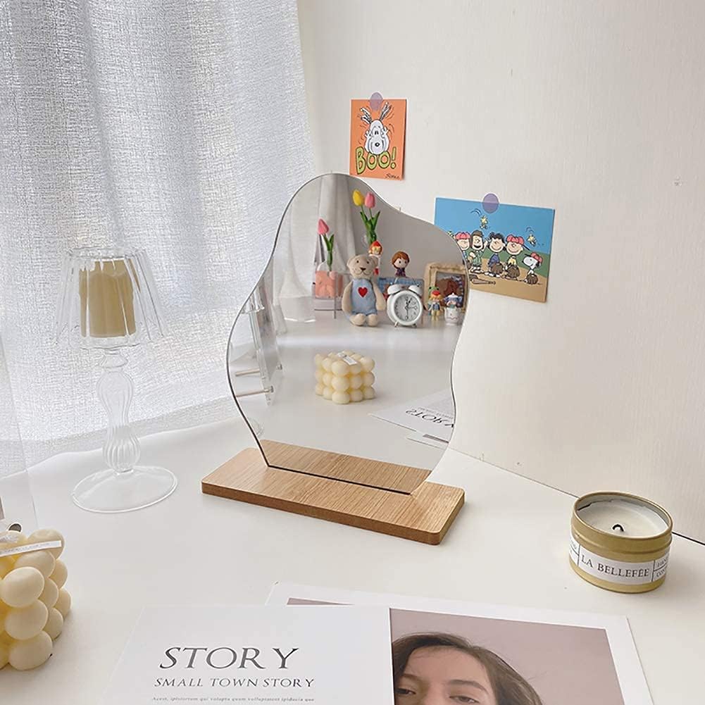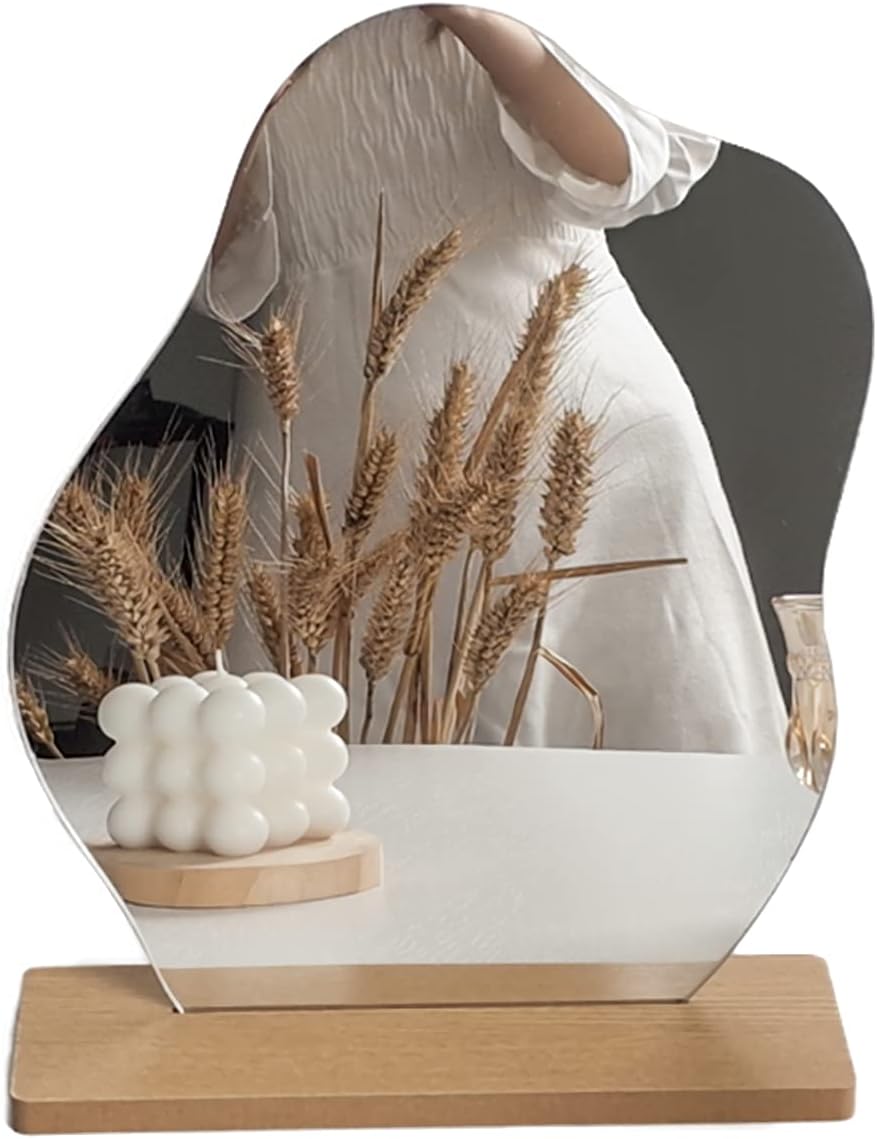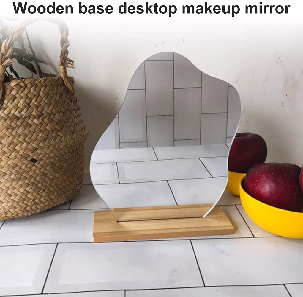 Tabletop Decorative Mirrors, 9.4 “x7.7 Ins Irregular Star Shape Acrylic Mirror with Wooden Base, for Makeup and Home Decorative